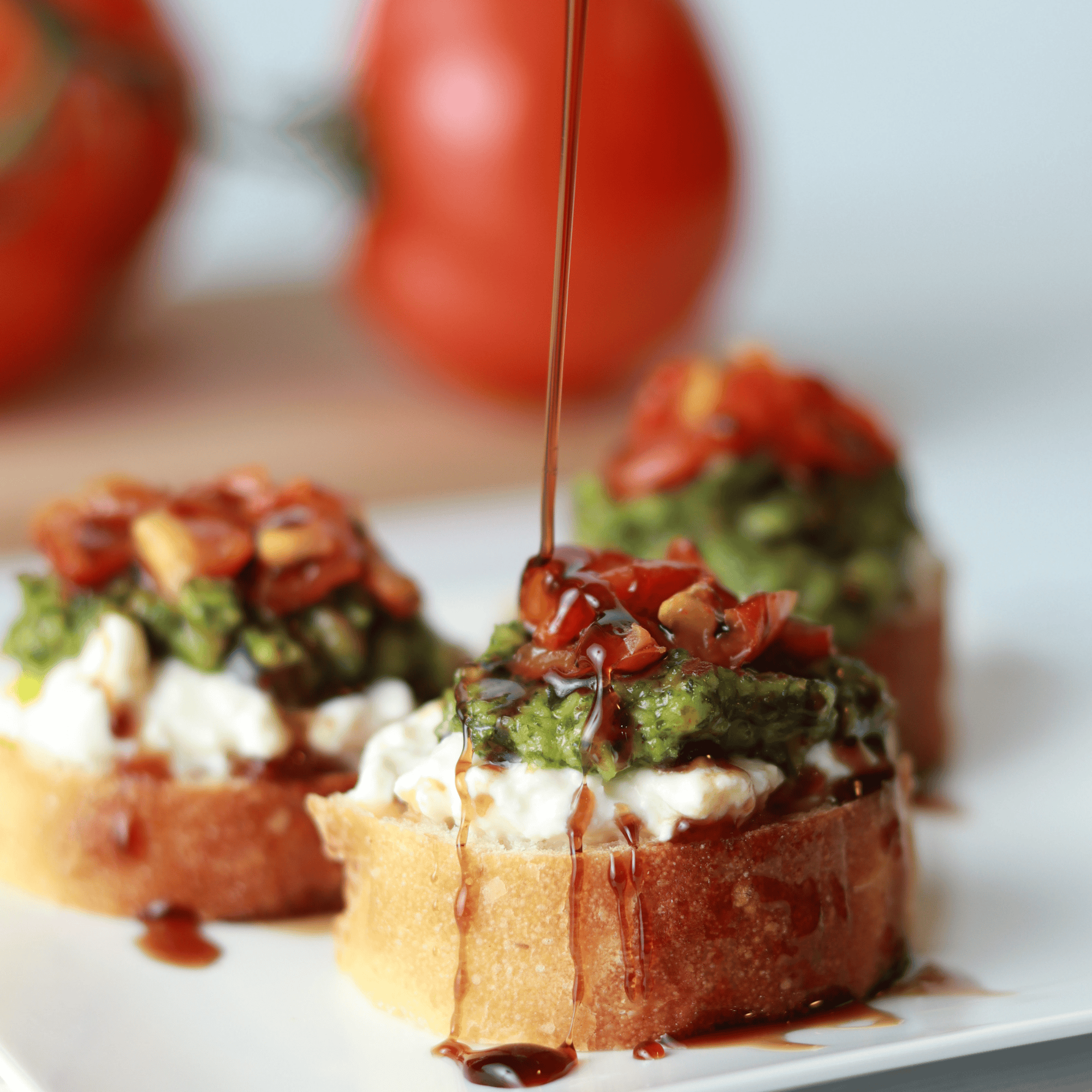 Ajoute les tomates confites coupées en petits morceaux, un peu de poivre, et termine par un filet de vinaigre balsamique.